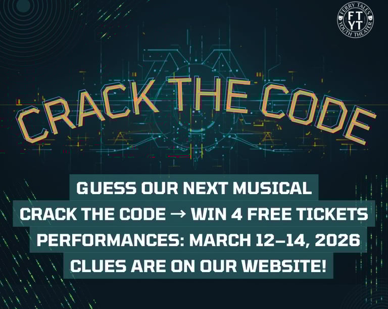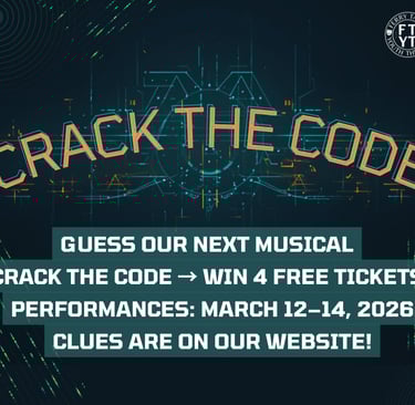 Can You Crack the Code to Our Next Musical? 🎭 We’re keeping our March 12–14, 2026 musical a secret… but you can uncover it! Hidden in a fun puzzle on this page is the title of our next show. Think you’ve solved it? COMMENT on our Facebook post to show you’re part of the fun and MESSAGE us your guess to be entered to win 4 free tickets!