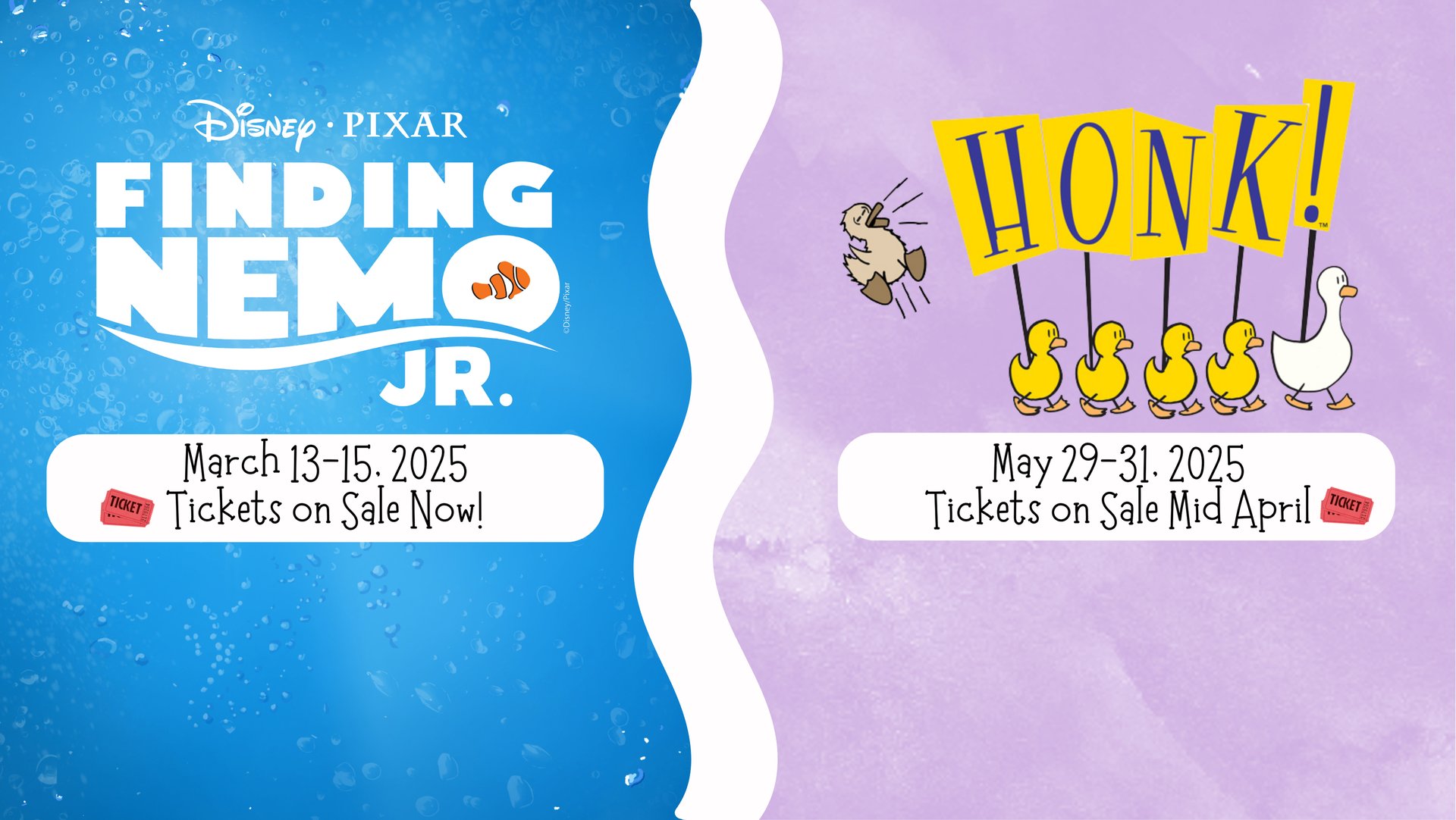 As a thank-you for taking the time to complete the survey, you’ll be entered into a drawing to win FOUR FREE TICKETS—two for Finding Nemo Jr. and two for Honk! This is a great opportunity to enjoy an upcoming show on us!